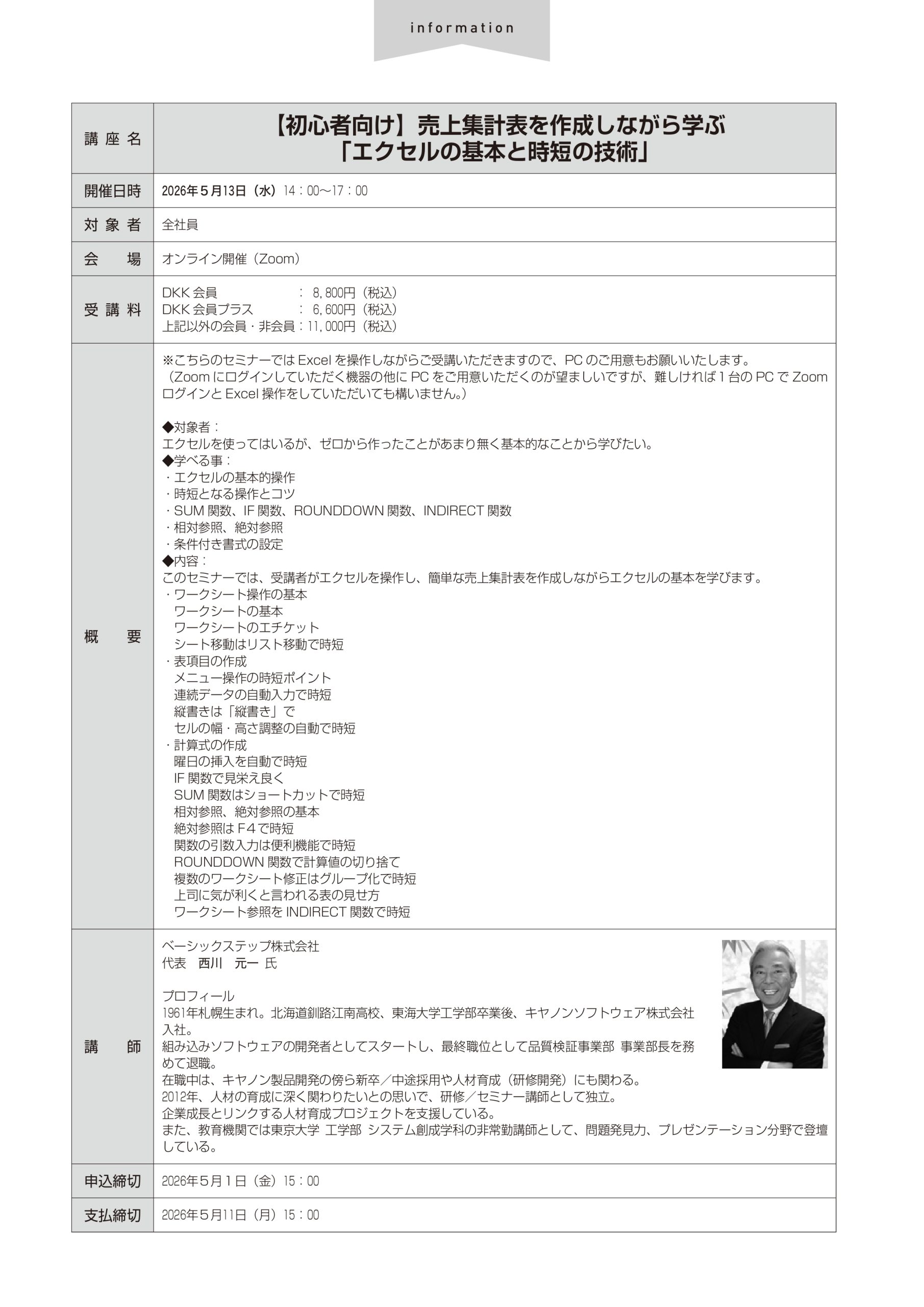 【初心者向け】売上集計表を作成しながら学ぶ 「エクセルの基本と時短の技術」